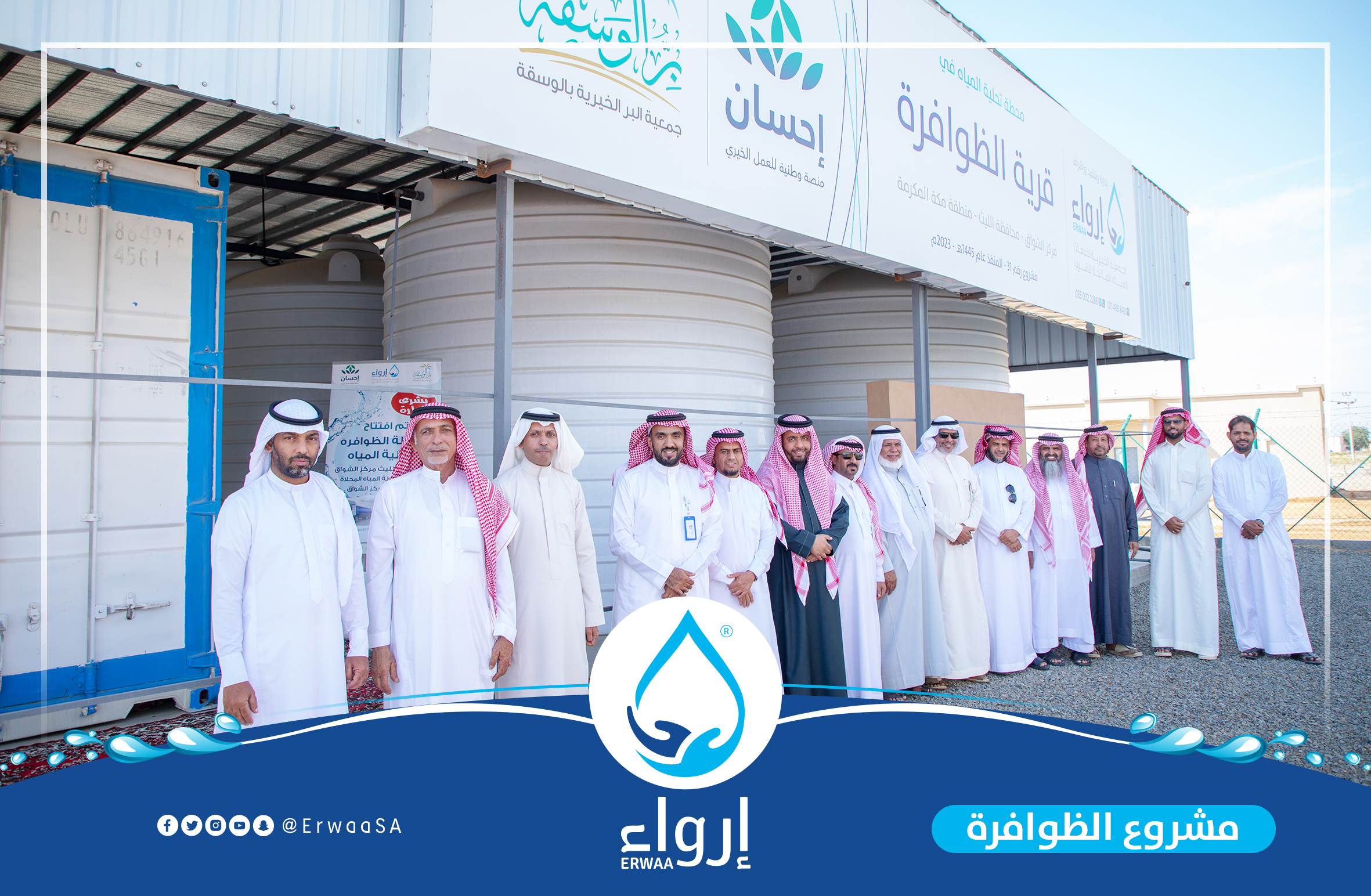 أعضاء جمعية البر بالوسقة والمدير التنفيذي لجمعية إرواء يدشنون محطة (الظوافرة) بدعم من منصة إحسان، وتنفيذ وإشراف جمعية إرواء وشراكة مع جمعية البر بالوسقة بحضور جمع من الوجهاء والأهالي ومنسوبي الجمعية.