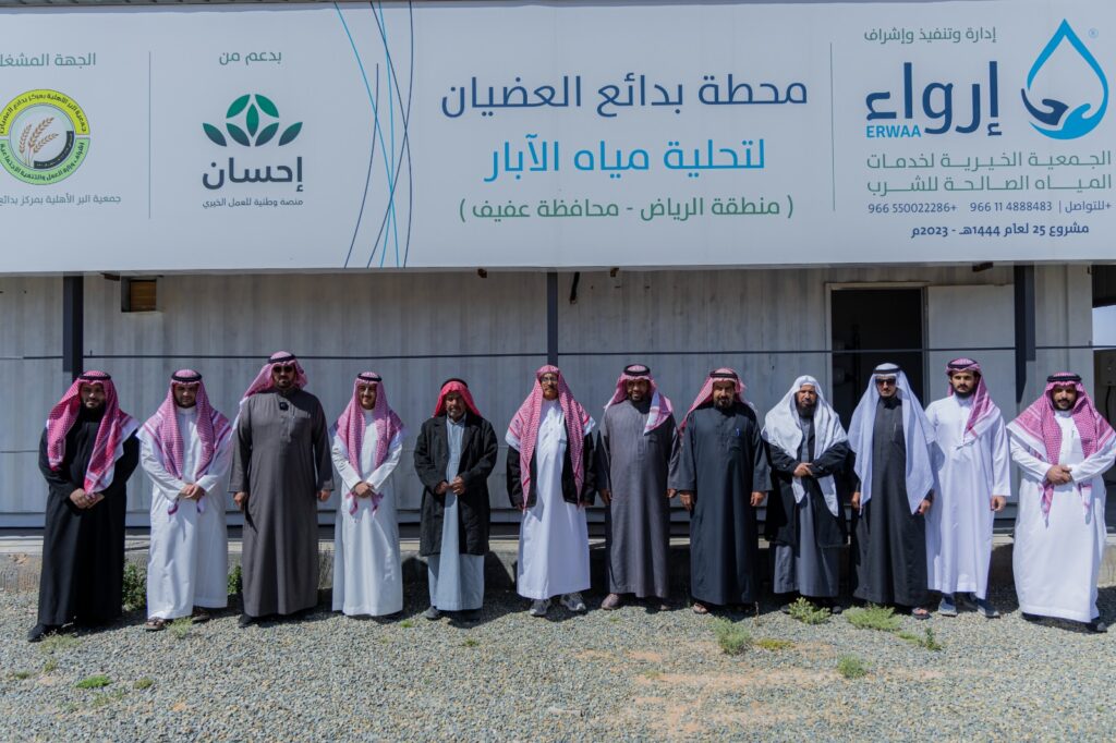 دشن الأستاذ / متعب المسيند، المدير التنفيذي للجمعية الخيرية لخدمات المياه الصالحة للشرب (إرواء)، محطة (بدائع العضيان في محافظة عفيف، تم تنفيذ هذا المشروع الهام بالدعم السخي من منصة (إحسان)، وحضور الأستاذ / عبدالله بن عبدالوهاب العضياني المدير التنفيذي لجمعية البر الأهلية بمركز بدائع العضيان.